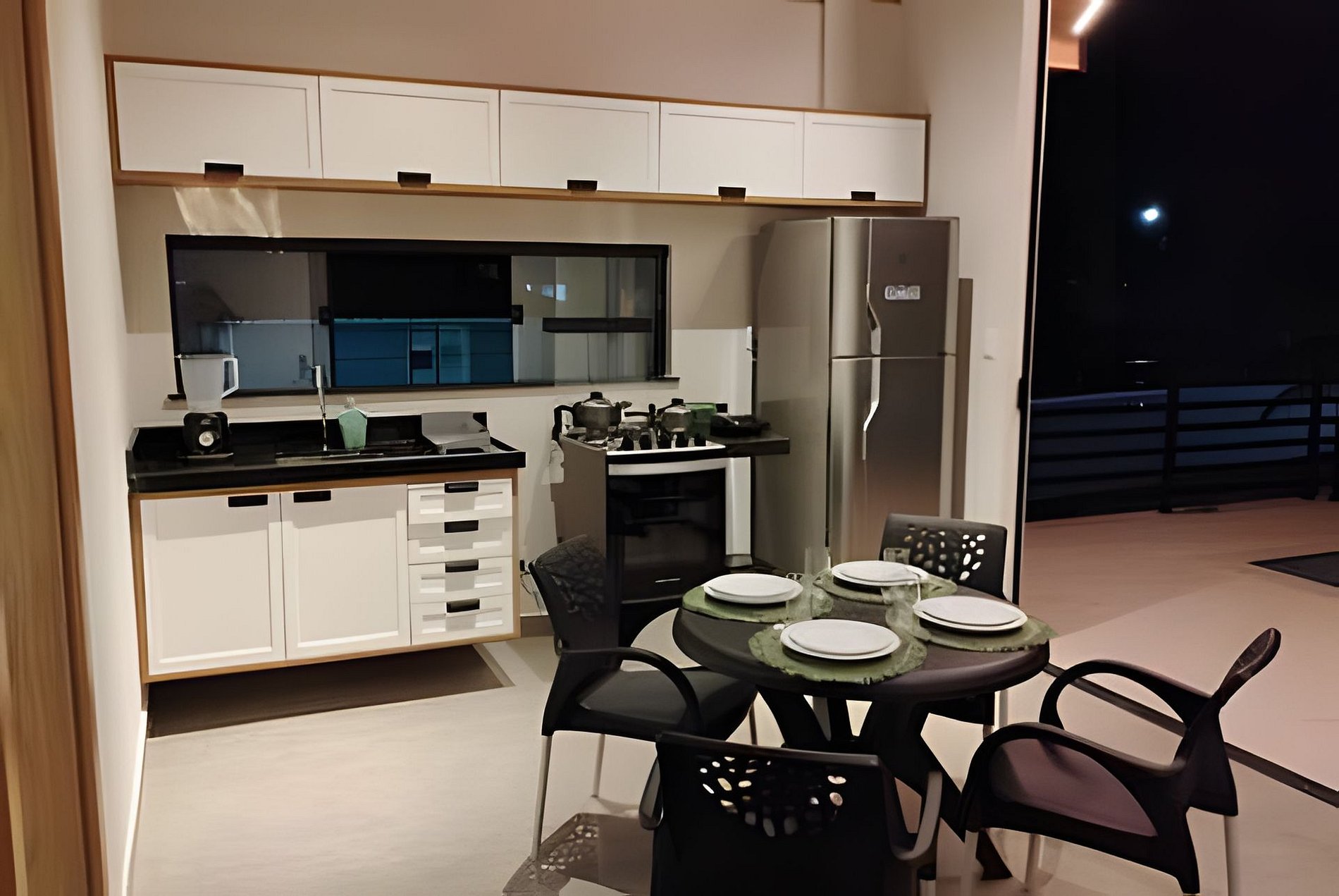 Com arquitetura contemporânea e ambientes planejados para o conforto, o condomínio oferece casas independentes, todas com piscina privativa, duas suítes com camas queen, sala e cozinha integradas e vaga de estacionamento.