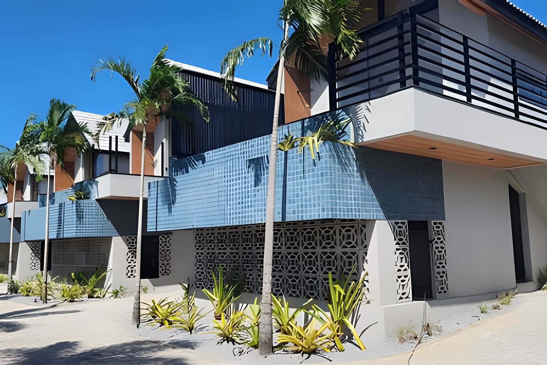 As áreas externas são bem cuidadas, com iluminação, paisagismo tropical e acesso fácil à praia.