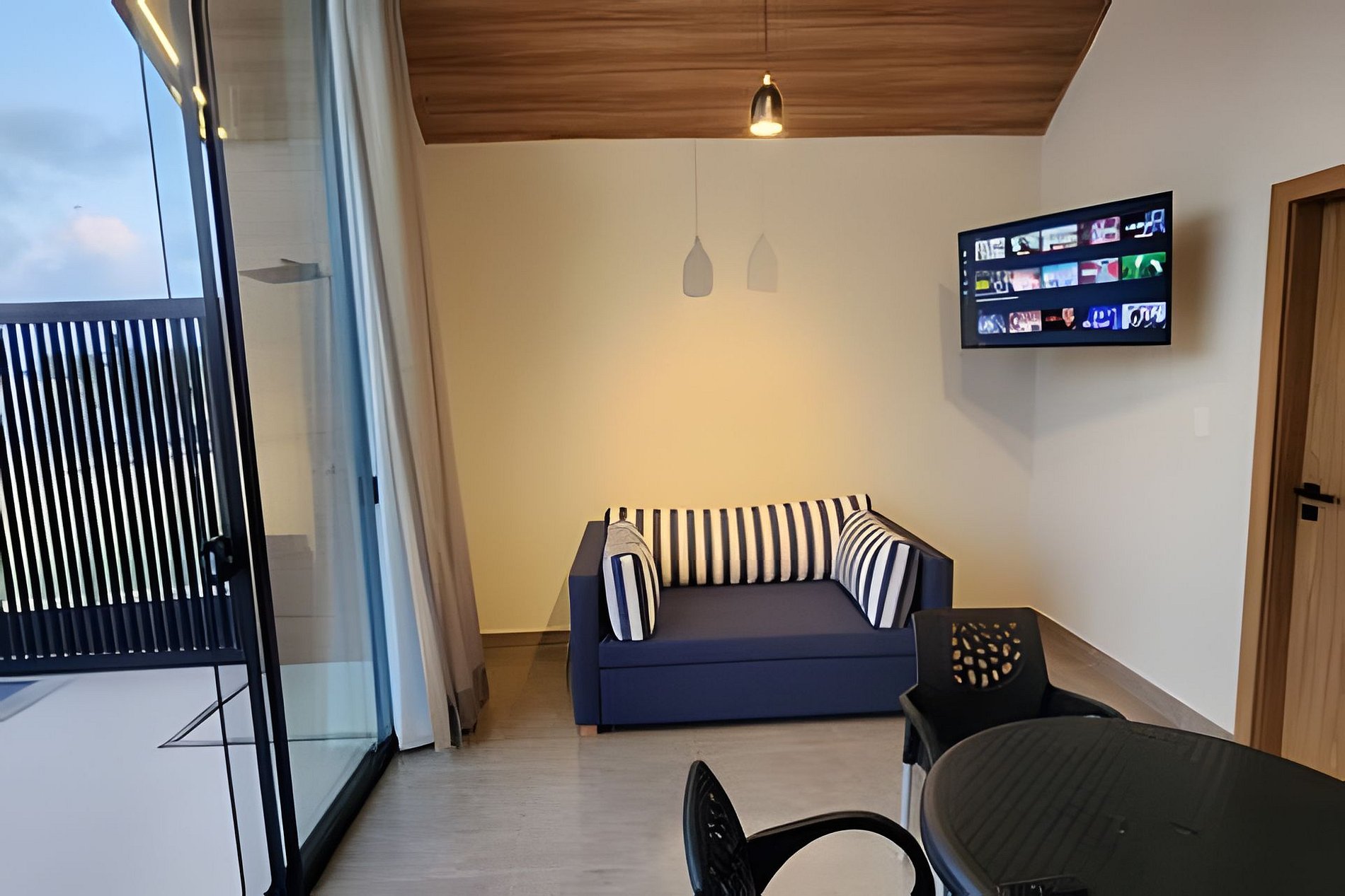 Com arquitetura contemporânea e ambientes planejados para o conforto, o condomínio oferece casas independentes, todas com piscina privativa, duas suítes com camas queen, sala e cozinha integradas e vaga de estacionamento.